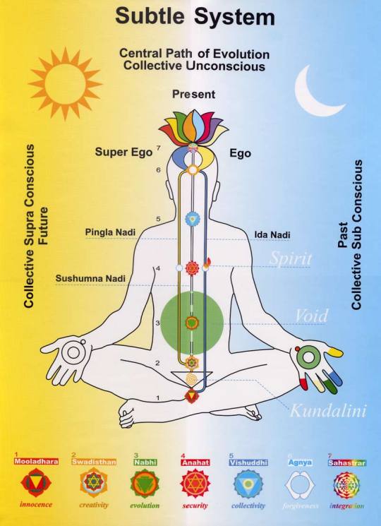 MOOLADHARA SVADISTHANA NABHI VOID ANAHAT VISHUDDHI AGNYA SAHASRARA